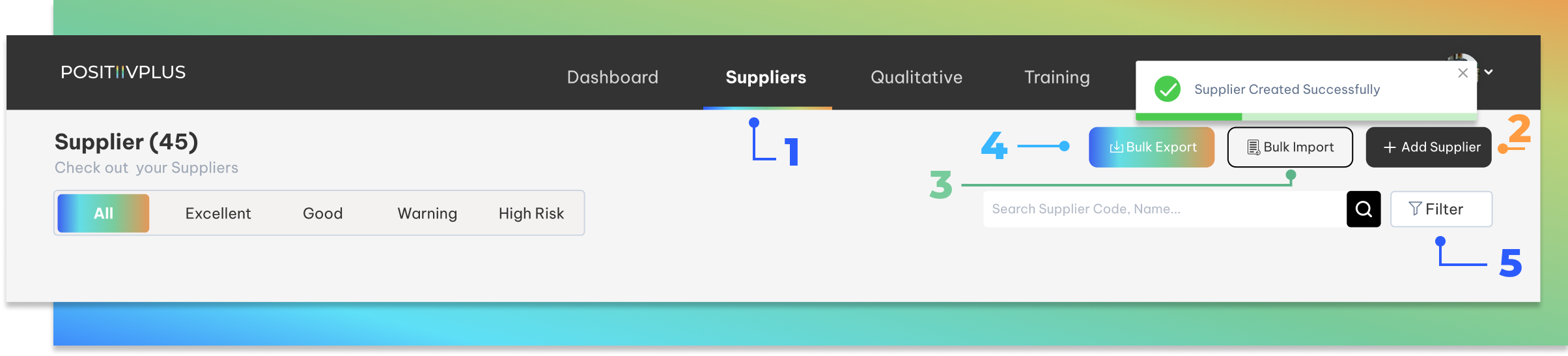The Supplier Interface is your central hub to manage all supplier-related tasks. Whether you're adding, searching, or exporting supplier data, this section simplifies supplier management on the POSITIIVPLUS platform.