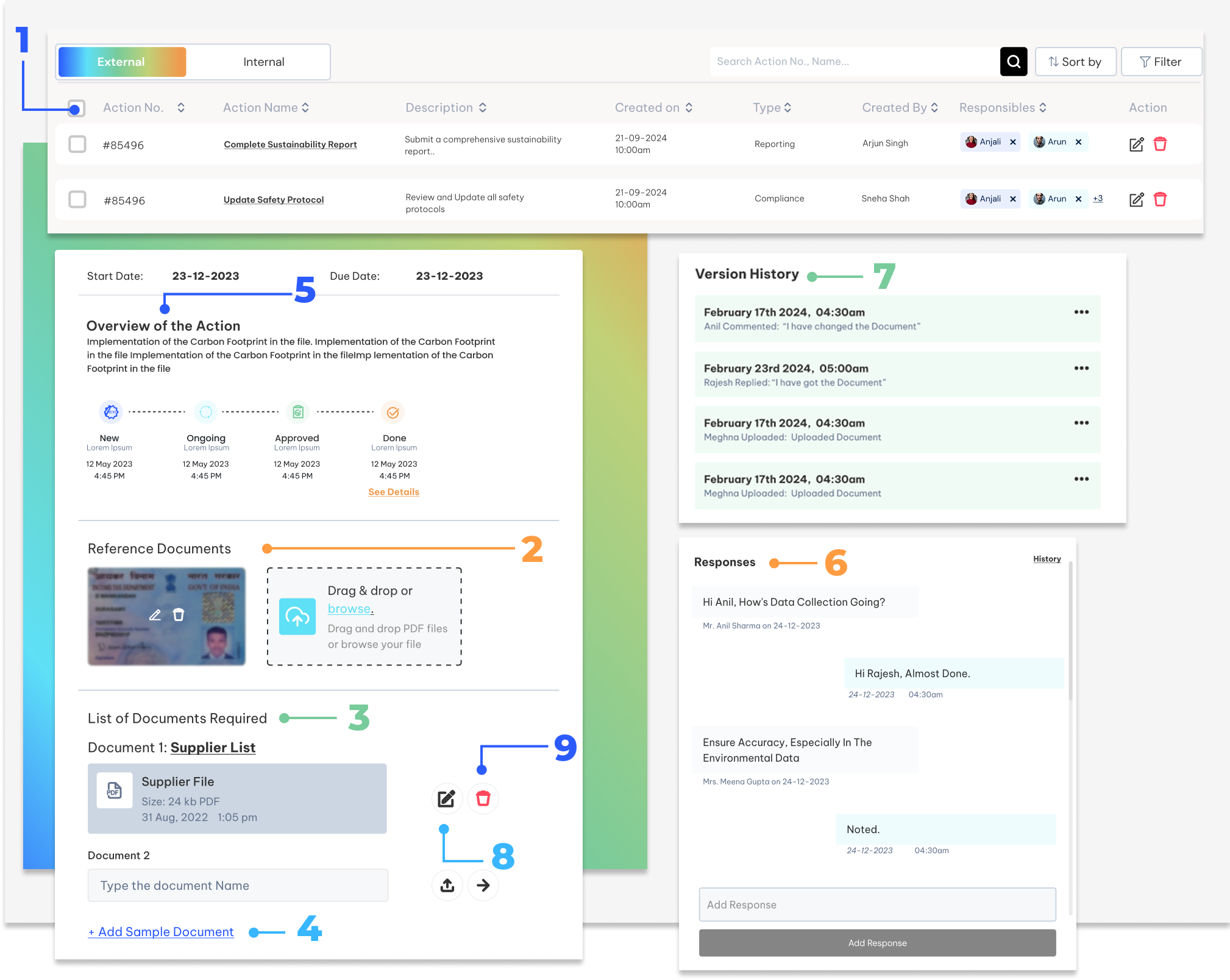 The Action Profile provides a full overview of an assigned action, including documents, status updates, and communication history. This guide walks you through each section of the profile to help you understand and manage actions effectively.